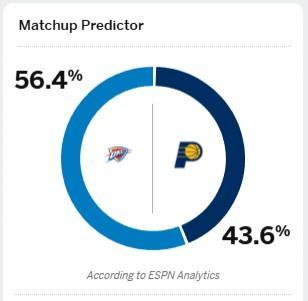 今天,ESPN更新G6胜率:雷霆56.4%,步行者仅43.6%。